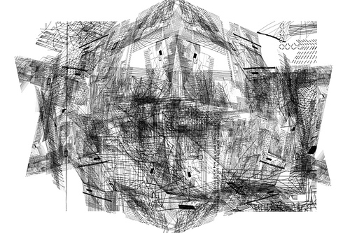 "gridworks2000-anim09" is a reproduction of work originally created while the artist worked in information visualization at Master-List2000.COM. The drawings are recreations from memory. They were drawn individually in both ink on paper and ascii plaintext over the course of 6 months just after the artist was laid-off from the organization. As a part of the severence agreement, the artist was required to destroy all of his personal copies of his work for them.