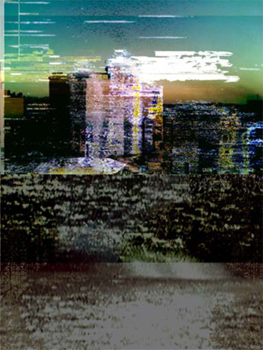 Slowly fluctuating cinematographic sequences of digital imagery and repeating flows of timely moving textual elements.