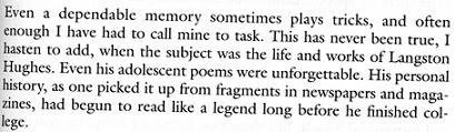 Bontemps, Arna. "Langston Hughes: He Spoke of Rivers," Freedomways Reader. Boulder: Westview Press, 2000.